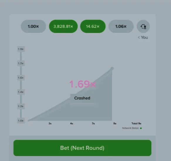 Choosing the right moment to cash out is the most important part, as you can’t redeem funds after the rocket has crashed. If the rocket hits the amount you set at the beginning or goes higher, you’ll win the round. But you lose the round if it crashes at any point lower than what you predicted.