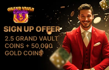 If you’d like to sign up to Grand Vault Casino simply click on our page banners, complete your registration and verify your account. You can then claim your free welcome bonus of 50,000 Gold Coins and 2.5 Grand Vault Coins to get started.