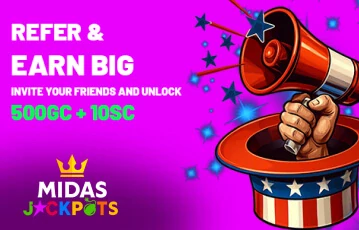 As far as an SC boost goes, this is one of the better ones at this site. 500 GC + 10 SC free comes your way when you introduce a friend to Midas Jackpots. The main caveat is that your friend must spend $20 on a GC purchase.