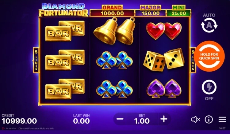 | Diamond Fortunator | Hold and Win feature with initial 3 spins |
