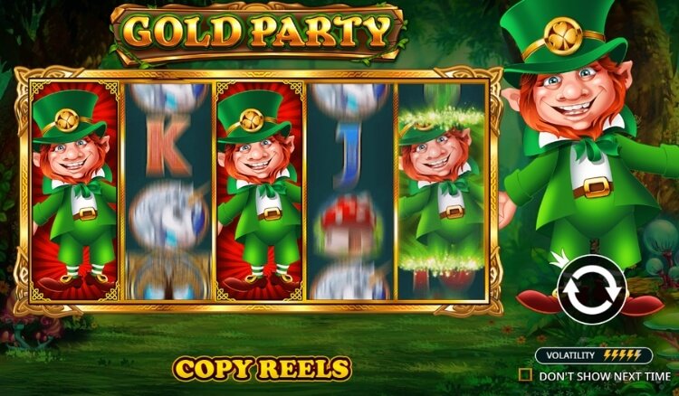 Can you help the leprechaun throw an unforgettable event? The Gold Party sweepstakes slot by Pragmatic Play features a classic leprechaun theme. Besides attractive audiovisuals, this high-volatility game has an above-average max win multiplier of 5,163x and bonus features like multipliers, re-spins, and cloning reels.