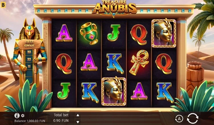 Are you ready for a trip to Ancient Egypt? Treasure of Anubis is among the best free online slots with bonus features that can help you. This BGaming slot includes a round of free spins and has an excellent RTP of 97.13%.