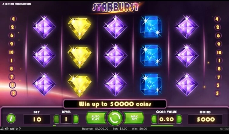 Starburst takes players on an intergalactic journey where electrifying tunes reign supreme. When you make a reward combination, the symbols involved will light up.