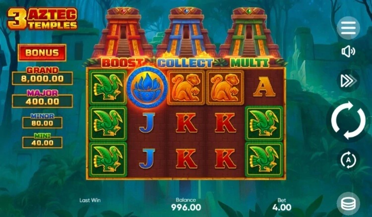 | 3 Aztec Temples | Numerous bonus features |