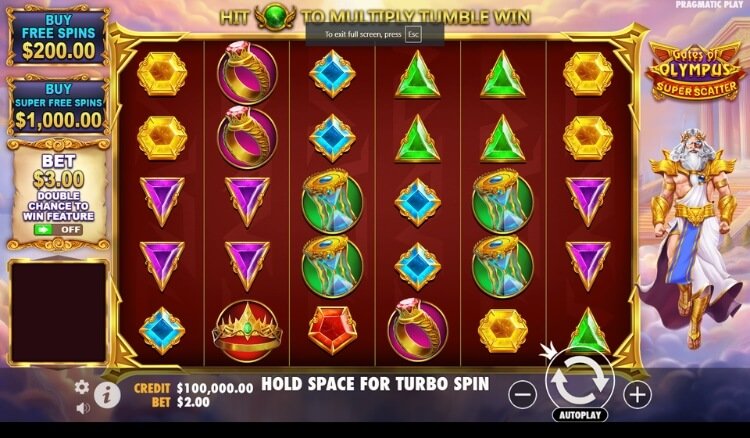 Gates of Olympus Super Scatter is the latest release in the Gates of Olympus series, and you shouldn’t need any convincing to try this slot. With features like Free Spins, Feature Buys, and the signature Super Scatter symbol that unlocks free spins and high multipliers, Gates of Olympus Super Scatter sets itself apart from other Gates of Olympus releases.