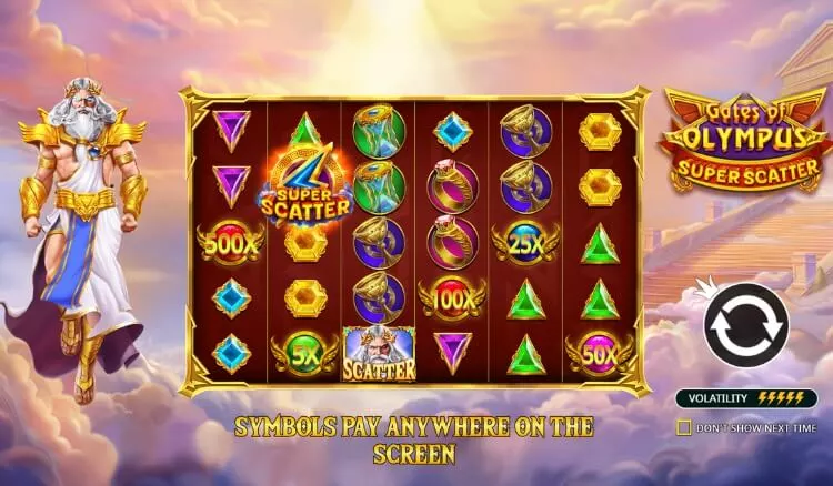 Gates of Olympus Super Scatter features a 50,000x maximum multiplier