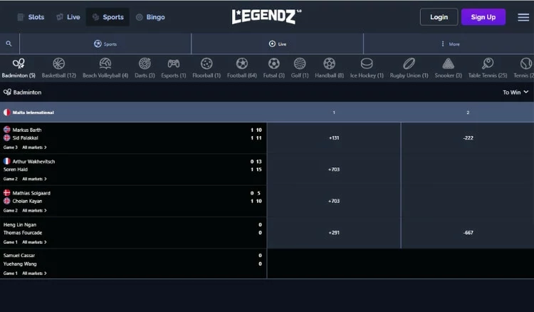 Additionally, Legendz integrates a unique daily reward system, allowing players to claim up to 1.5 Sweepstakes Coins each day they log in to the site. However, what was most exciting for me was the social sportsbook’s coverage of over 30 sports, including niche markets like badminton, darts, and esports.