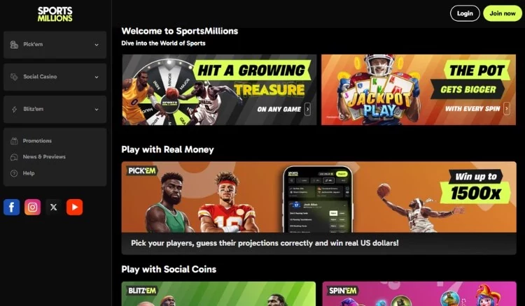 SportsMillions was launched in 2024 and is operated by Special M Limited. Upon registering an account on this social sportsbook, I received a generous welcome bonus of 1,000 GC and 3 SC. Besides this, SportsMillions offers a sharp interface and fast gameplay across a broad range of sports.