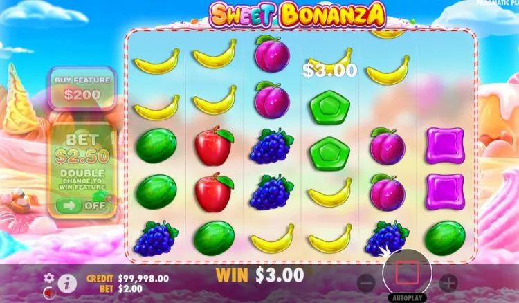 Pastel skies, floating candies, and tumbling fruit symbols. Itâs deceptive: this one looks cute but it hands out prizes like a sledgehammer. Cluster pays and tumbling reels mean one good spin can keep exploding. 4+ lollipops trigger 10 free spins. It never leaves the top 10. Period.