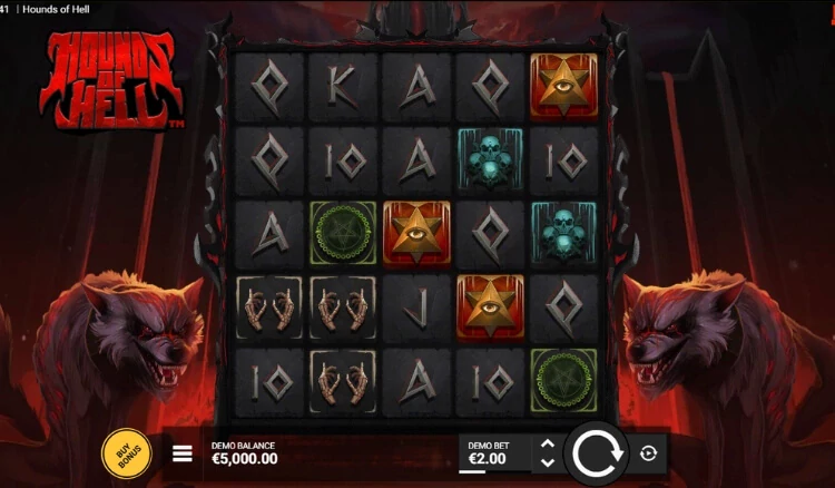 Hounds of Hell is a dark and atmospherically gothic slot from Hacksaw. Instead of paylines, the board has a scatter pays model and a cascade mechanism. There are also several excellent bonuses, such as the hellhounds cash prize multipliers, free spins and a special ‘Hounds are Loose’ feature where low paying symbols are removed from the board.