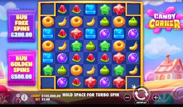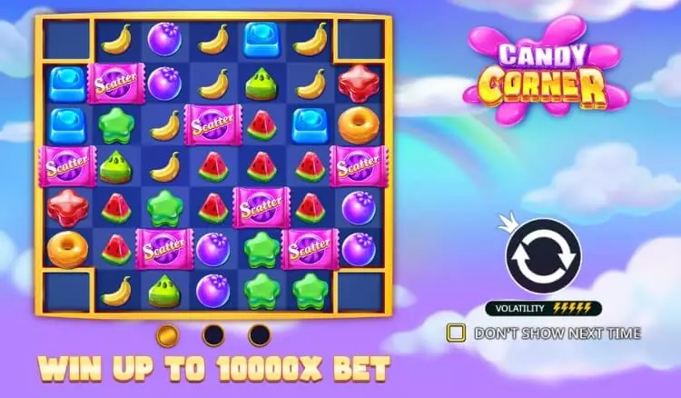 Candy Corner is a super sweet, don’t tell your dentist, slot made by Pragmatic Play. It has a Candy Crush type aesthetic and an unusual modifying corners function where win multipliers or wilds may be added to the board. These special symbols can also land during the free spins round.