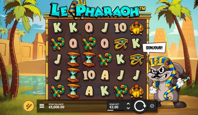 Le Pharaoh is part of a Hacksaw Gaming series following the adventures of time-travelling raccoon, Smokey. In this outing, Smokey finds himself in ancient Egypt and has added several more bonus features to the game. That includes Sticky Redrops, where winning combination symbols stick to the board, and Golden Riches, where special win multipliers can be revealed on the board.